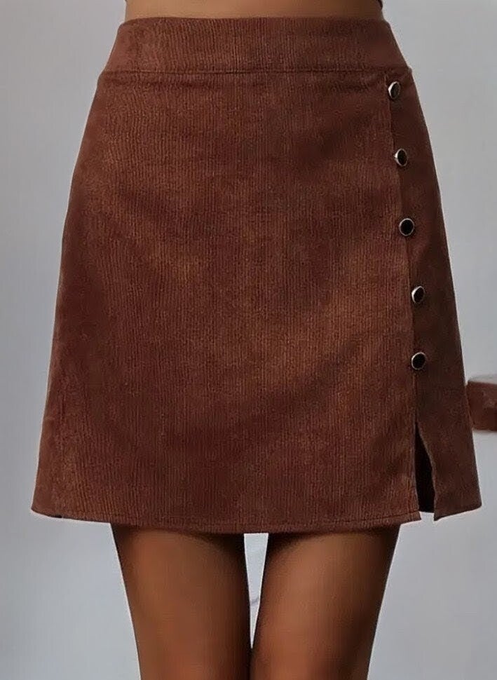 Korte Rib Mini Rok Bruin, S t/m XL